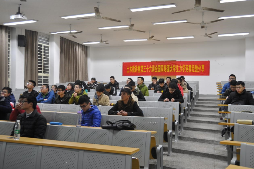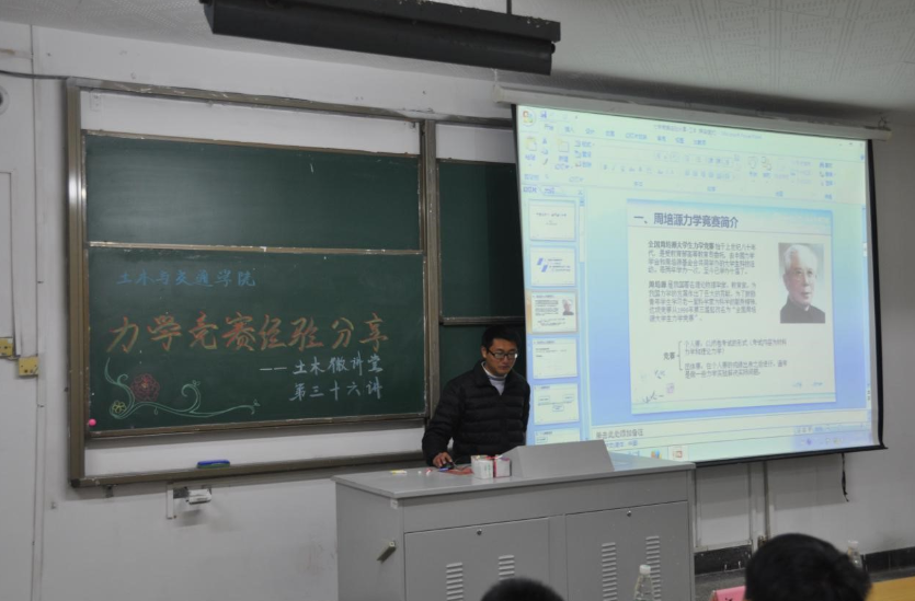 2017年2月22日18点30分,土木与交通学院土木微讲堂第三十六讲之“全国周培源大学生力学竞赛参赛经验分享”在我校西康路校区北教101成功举办。本次微讲堂邀请到了12级土木工程优秀本科生胡艳杰以及13级土木工程优秀本科生江洋两位同学作为主讲人,为同学们分享他们参加周培源大学生力学竞赛的经验。