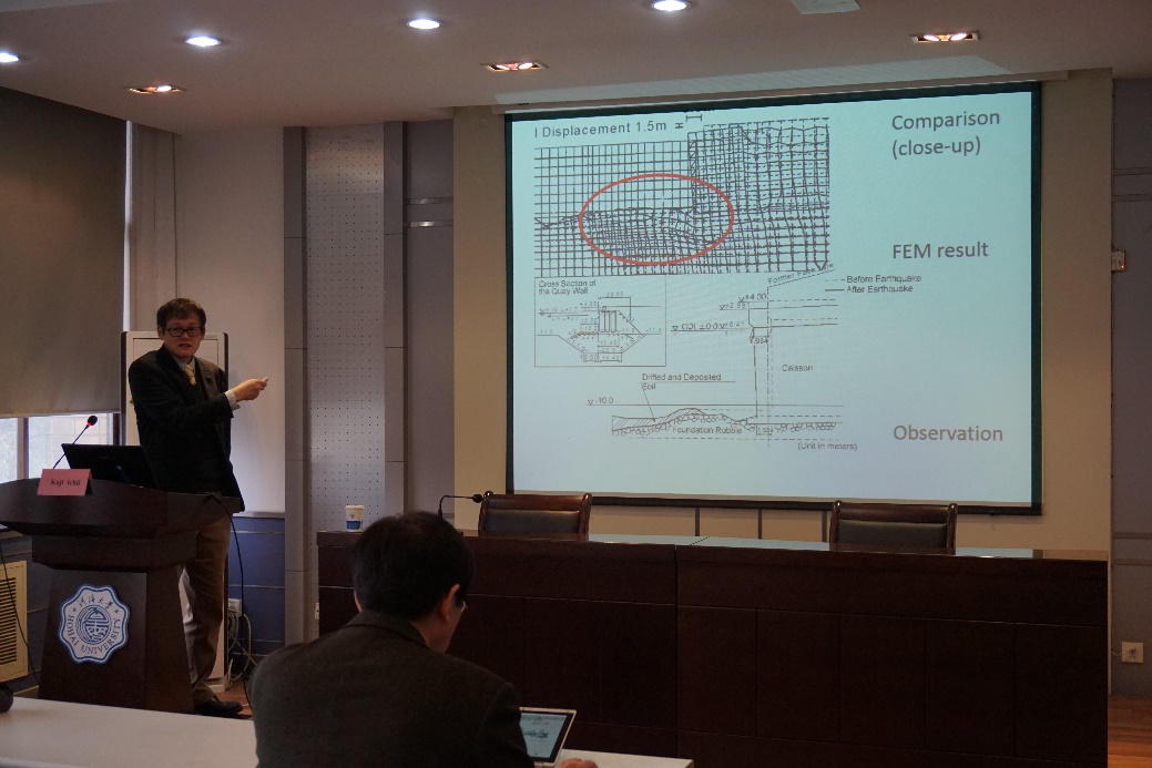 应我院安全与防灾工程研究所所长陈育民教授的邀请,日本关西大学一井康二(Koji ICHII)和土田昭司(Shoji TSUCHIDA)教授于2017年12月28日来我院进行学术访问和交流。28日上午9时,Koji ICHII教授在我院科学馆516会议室做了题目为“基于性能的岩土工程构筑物抗震设计方法研究”的学术报告,报告会由我院防灾所所长陈育民教授主持,学院教师及学生参加了报告会。一井教授在报告中,主要介绍了国际土力学与岩土工程学会(ISSMGE)堤坝工程减灾与修复委员会(TC303)的相关信息以及数值模拟在岩土工程领域尤其是工程减灾方面的相关应用。报告会结束后在陈育民教授的陪同下参观了岩土力学与堤坝工程教育部重点实验室。
